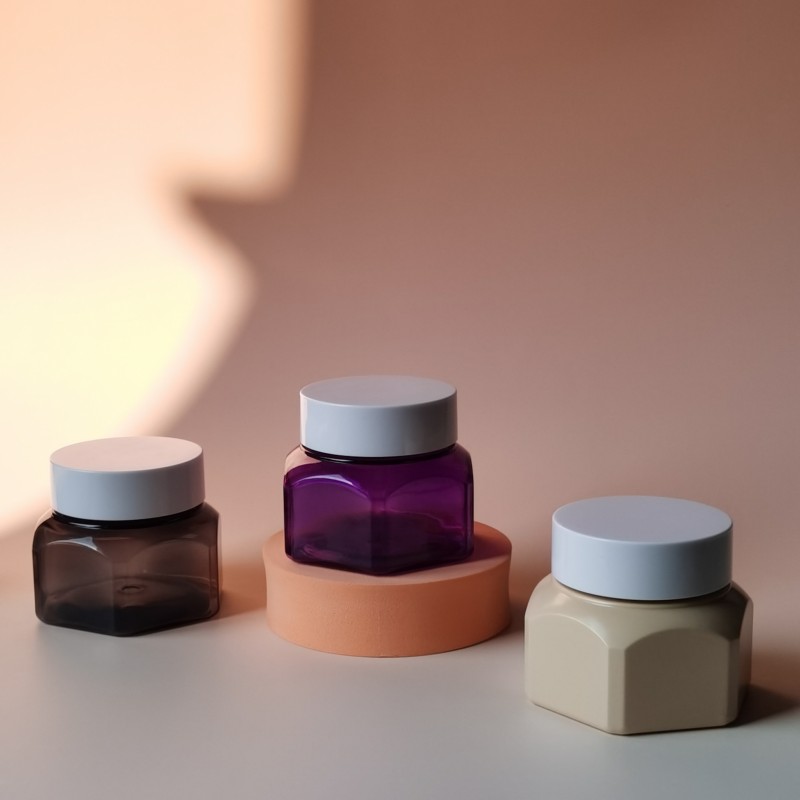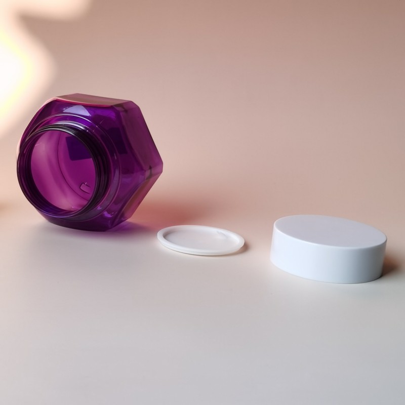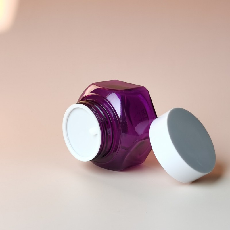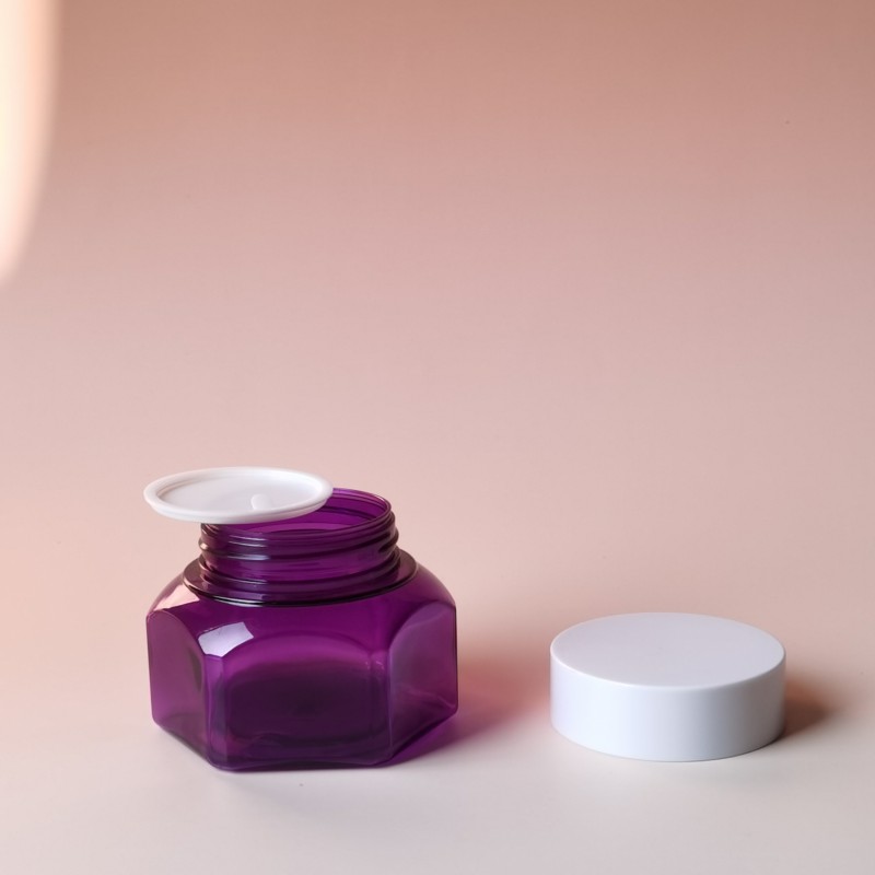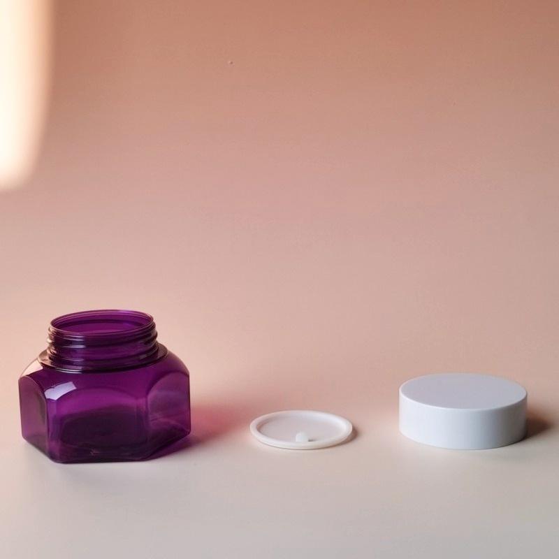 New Flower Shape Plastic Container Customize Color Body Scrub Jars Face Cream Skincare Container Luxury Make up Big Mouth Jar. The jar features a sleek, smooth finish that not only enhances its aesthetic appeal but also provides a luxurious feel in the hand. Its airtight, leak-proof design ensures that your product remains fresh and protected from contamination, while the wide-mouth opening allows for easy access and application.