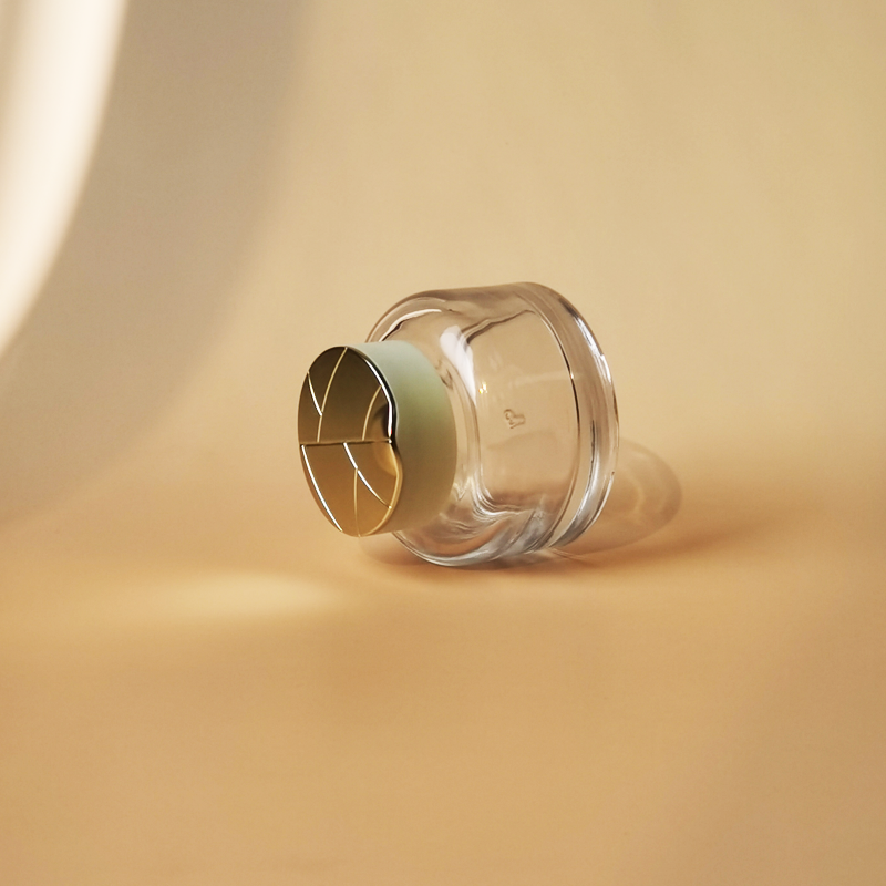Glass Cosmetic Package Set Luxury Lotion Bottle and Cream Jar Set With Gold Tea Leaf Top Cap GS0086