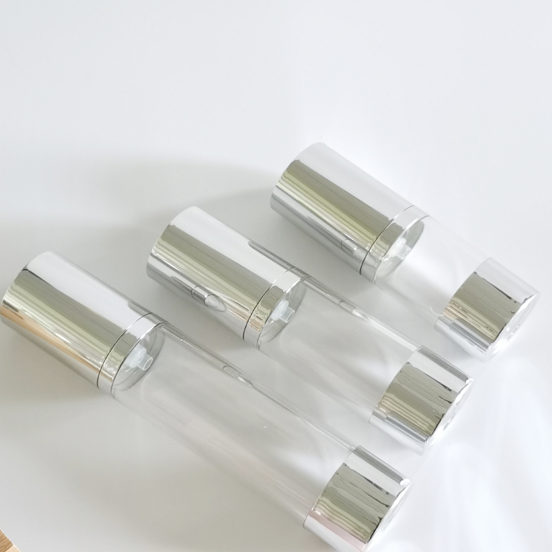 Luxury Design Silver Electroplated Airless Lotion Pump Bottle Silver Pump Bottle Travel Bottling Refillable Skincare Packaging.The Airless Bottle is an advanced packaging solution designed to maintain the potency and efficacy of your most delicate formulations. With its airless pump technology, this bottle ensures that your products are protected from oxidation, contamination, and waste, making it a top choice for high-end skincare and cosmetic brands.
