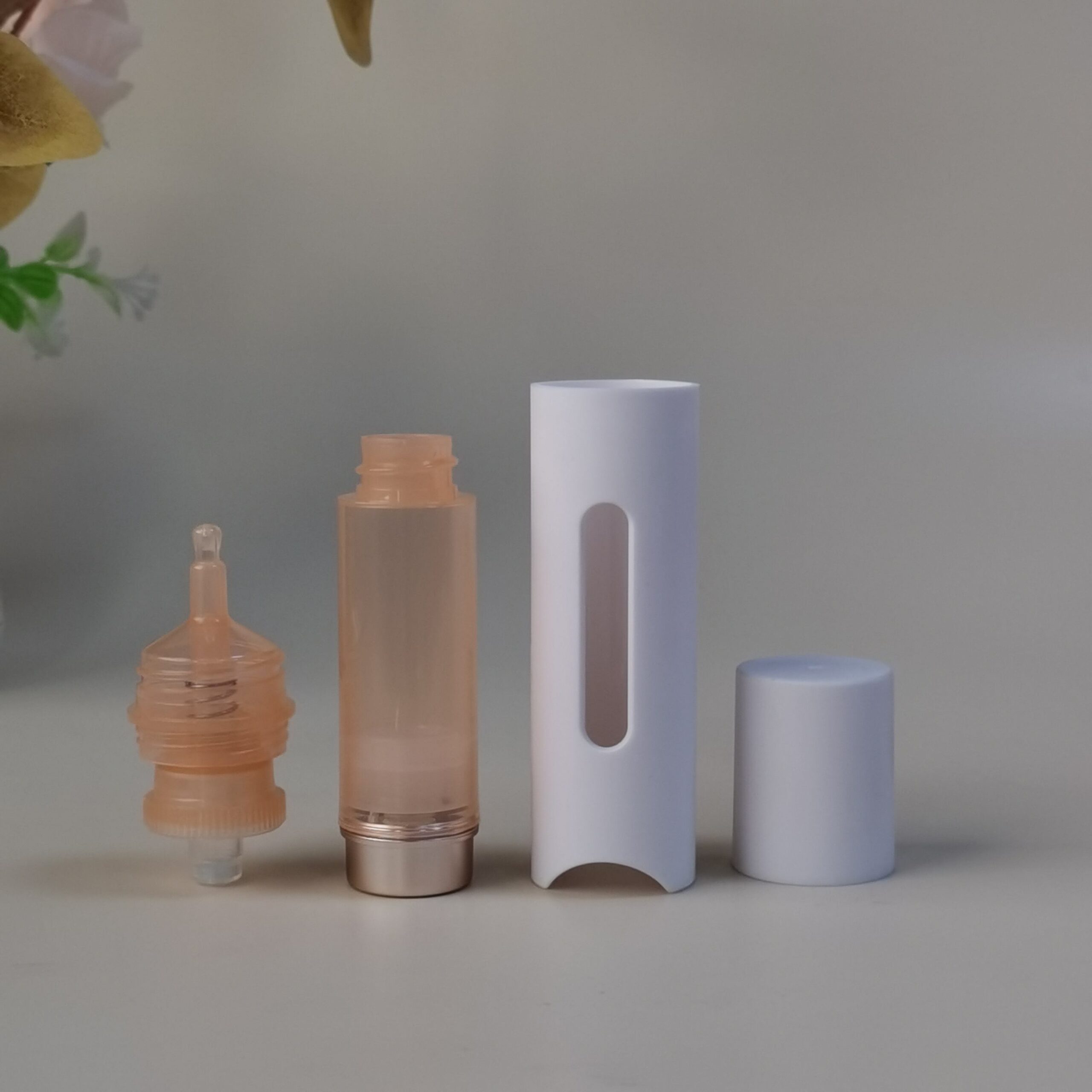 15ml Korean Double Wall Serum Essential Oil Lotion Cream Airless Bottle With visible window, the matte finished looking make it more luxury than shiny design. It is good for eye serum, lotion,BB foundation and so on.The matte metal finished bottom is more popular in the market. Airless Bottle is an advanced packaging solution designed to maintain the potency and efficacy of your most delicate formulations. With its airless pump technology, this bottle ensures that your products are protected from oxidation, contamination, and waste, making it a top choice for high-end skincare and cosmetic brands.